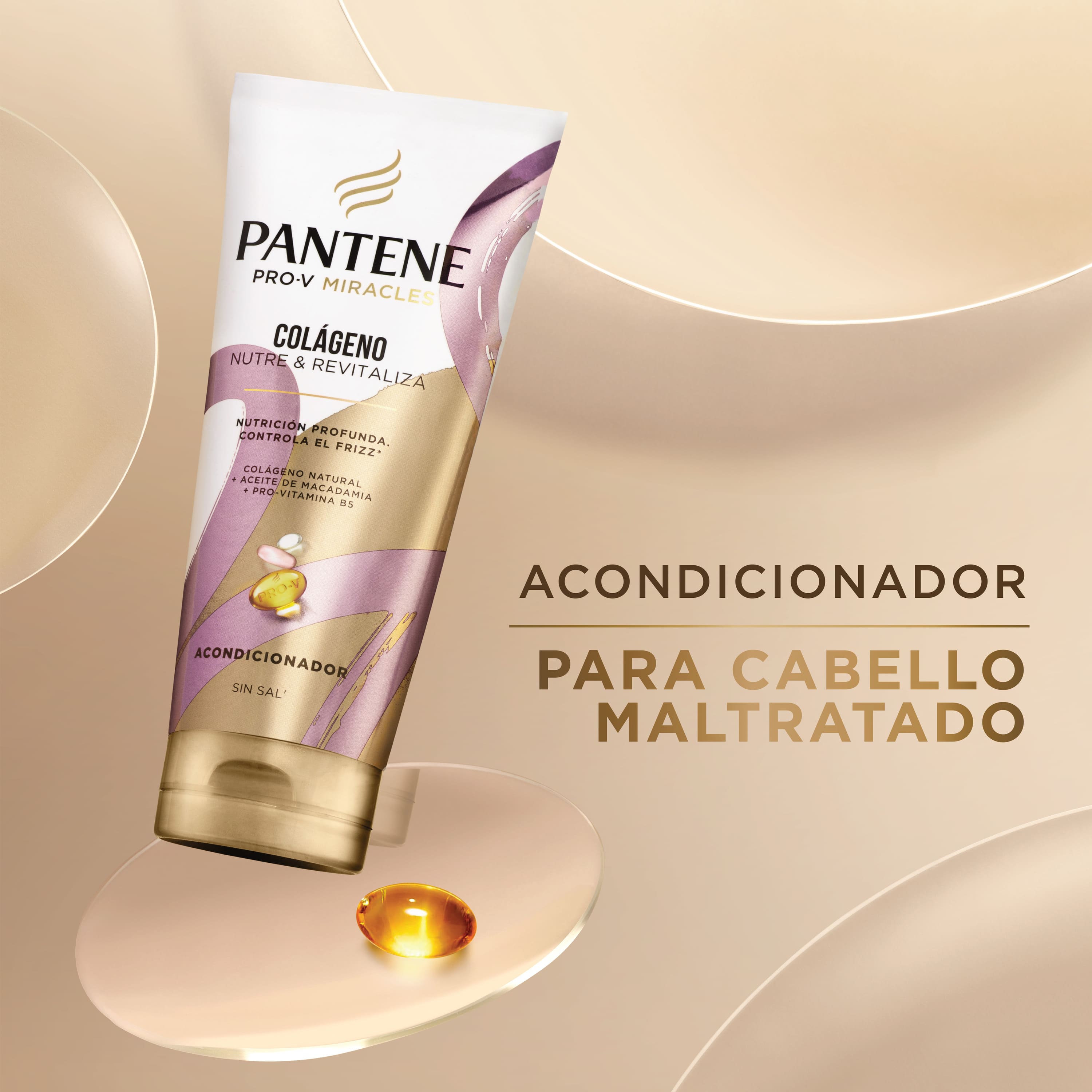 El Acondicionador sin sal1 Pantene Pro-V Miracles Colágeno Nutre y Revitaliza contiene ingredientes acondicionadores activos que lubrican el cabello para una sensación de suavidad inigualable y potenciando los beneficios de nutrición del shampoo. ¡Decile adiós al frizz y las puntas abiertas! 1 Sin adición de NaCl